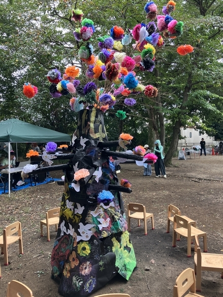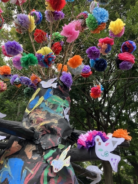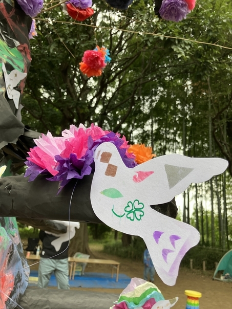 木にみんながデザインしたハトが貼られ、平和の木も完成〜☆